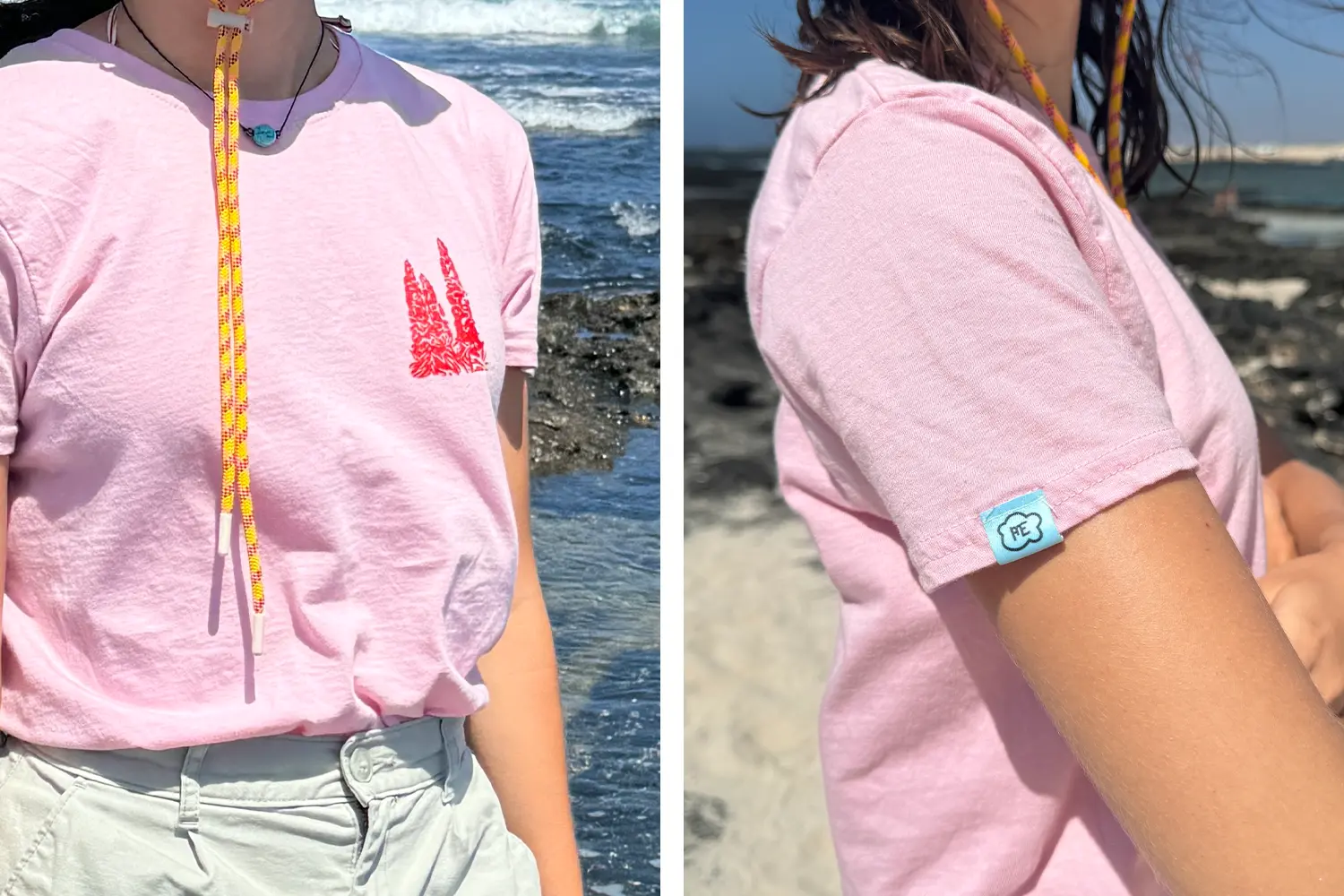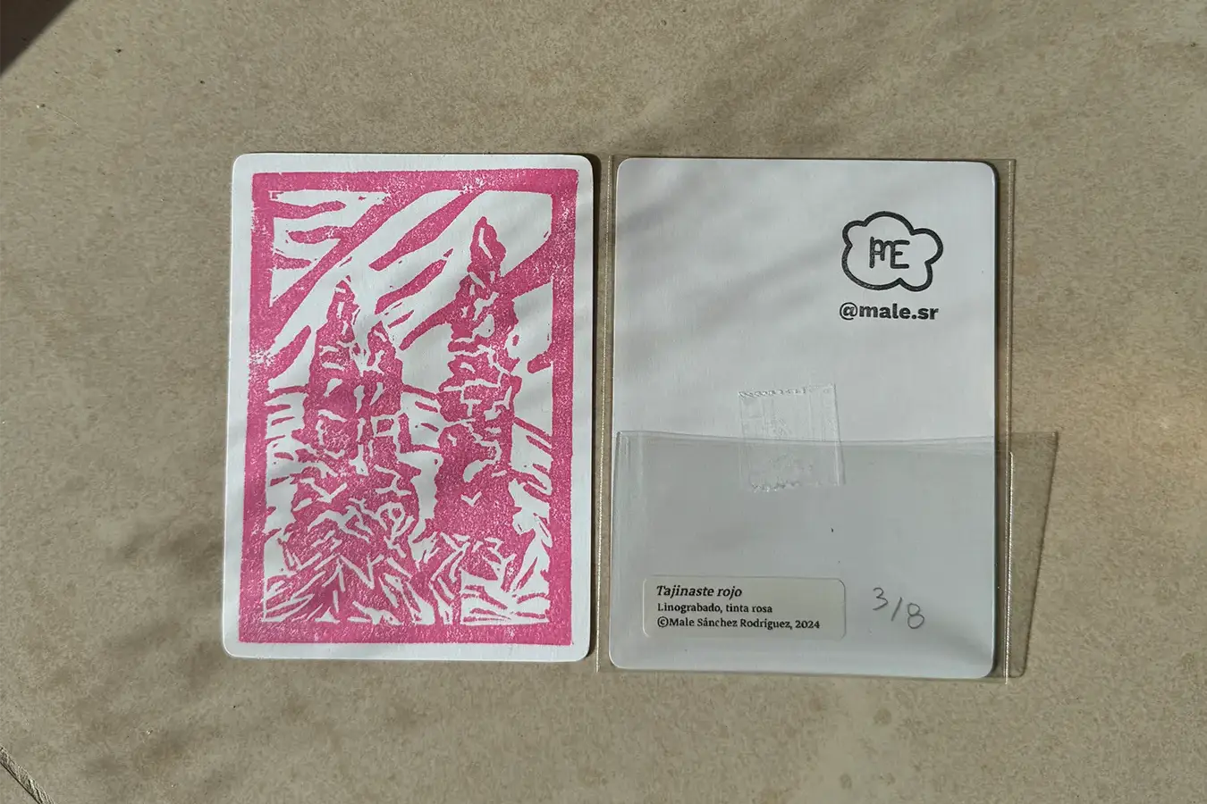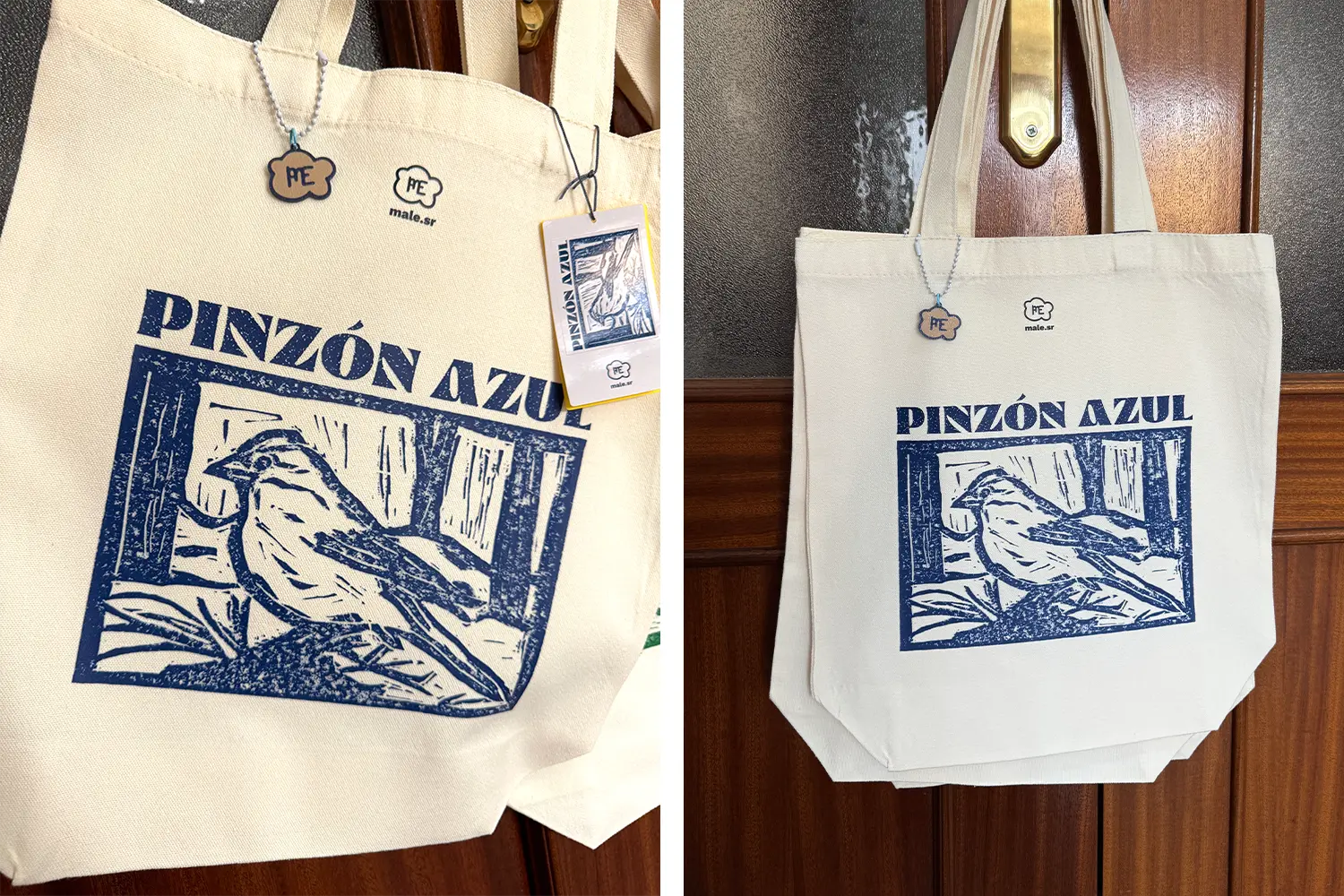 Las camisetas incluyen una etiqueta en la manga con mi logo personal y las bolsas van acompañadas de un llavero impreso en 3D con el mismo. Ambos productos llevan una etiqueta con instrucciones de lavado y una pegatina con el diseño correspondiente.