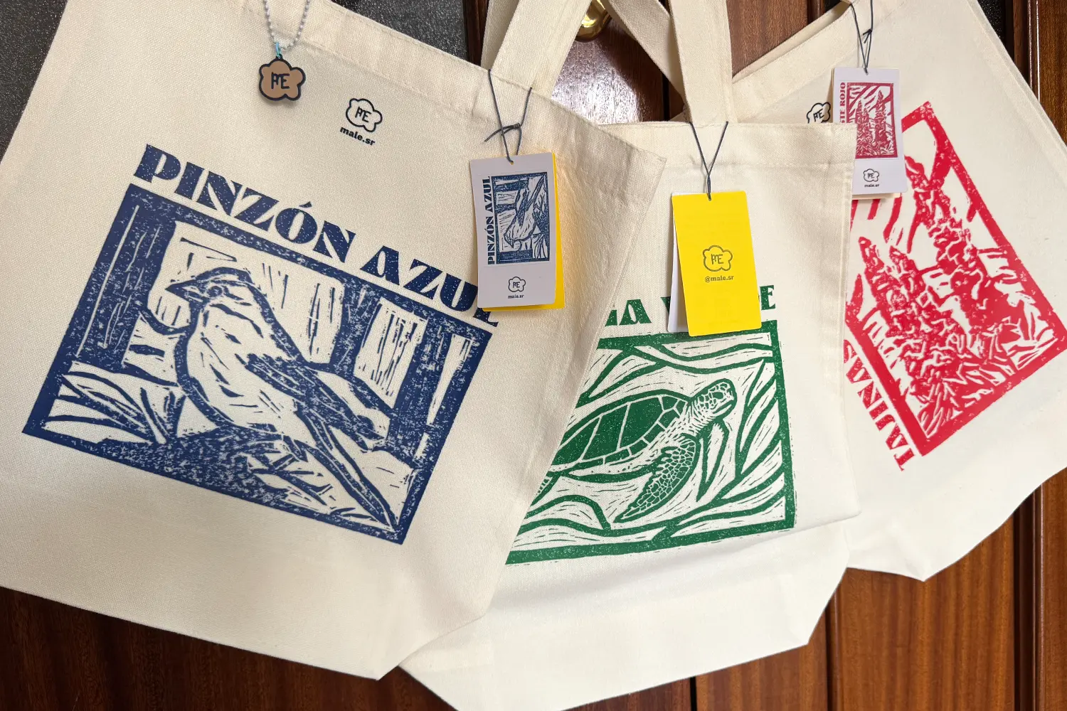 A partir de esas ilustraciones, creé un diseño con el nombre de la especie para unas camisetas y bolsas de tela, estampadas mediante la técnica DTF.