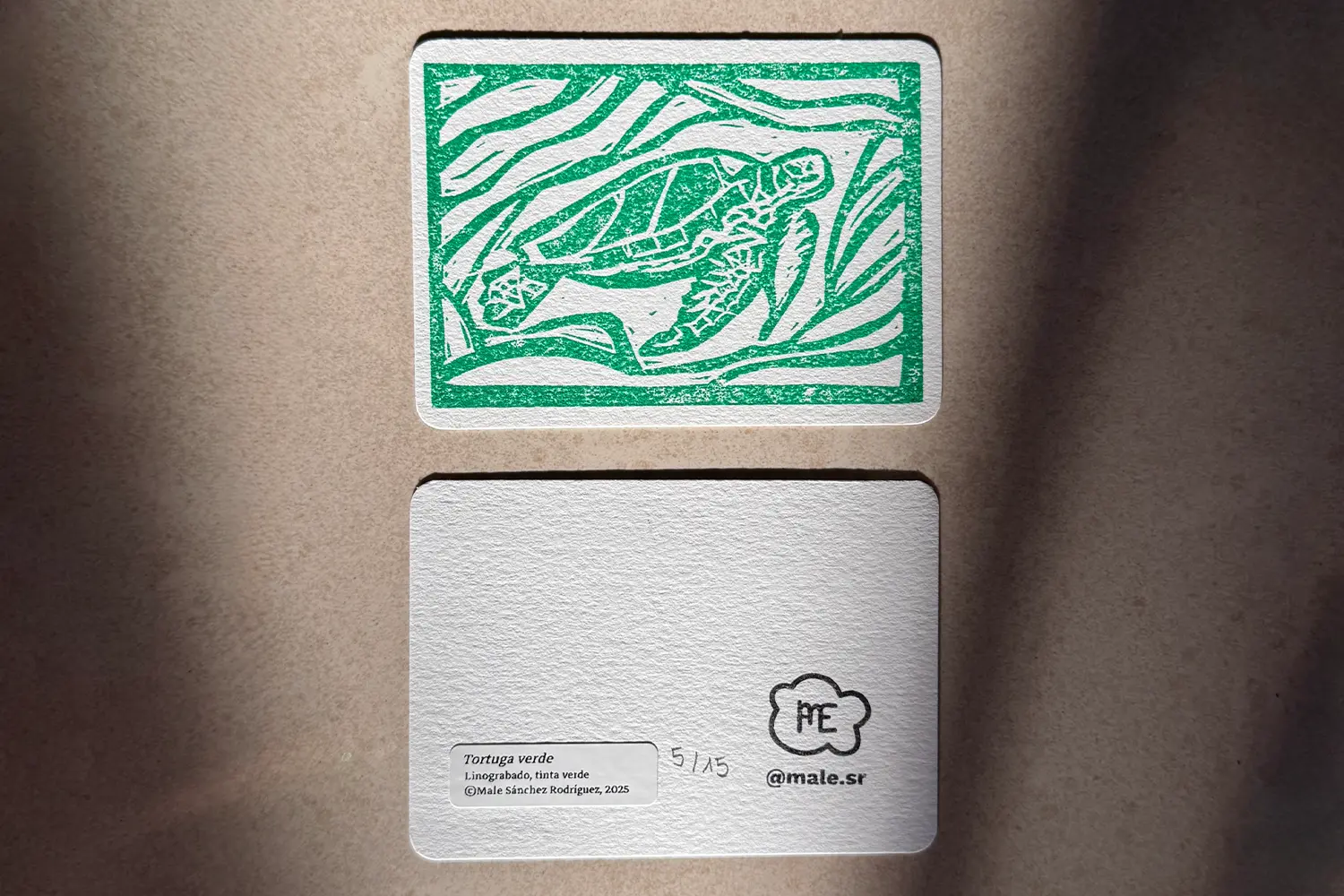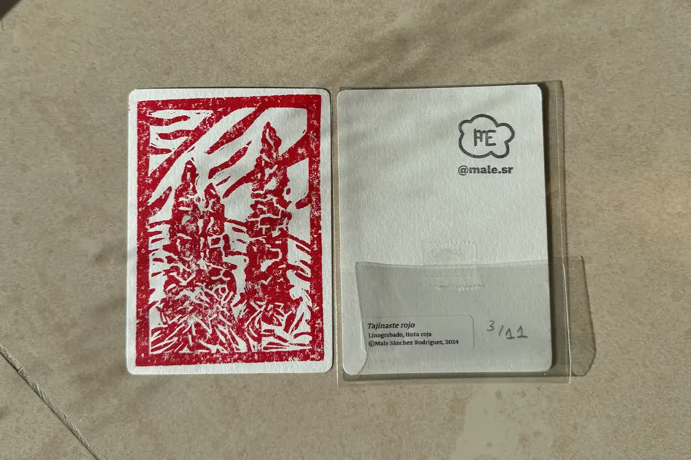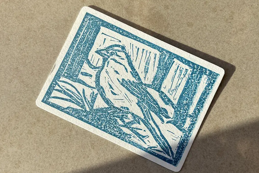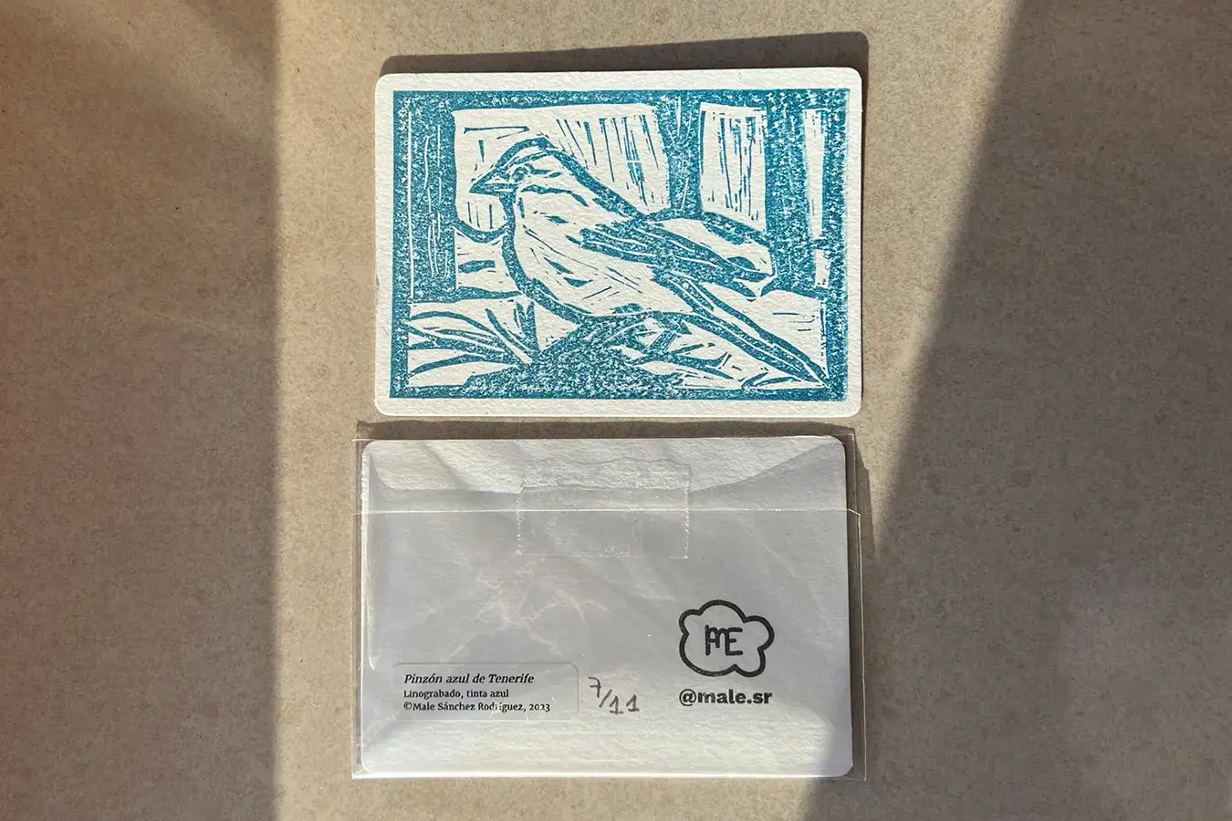 Ilustración de especies de Canarias, el pinzón azul, el tajinaste rojo y la tortuga verde, realizadas con la técnica de linograbado. Además, se imprimieron en 3D unos marcos para colocarlos.