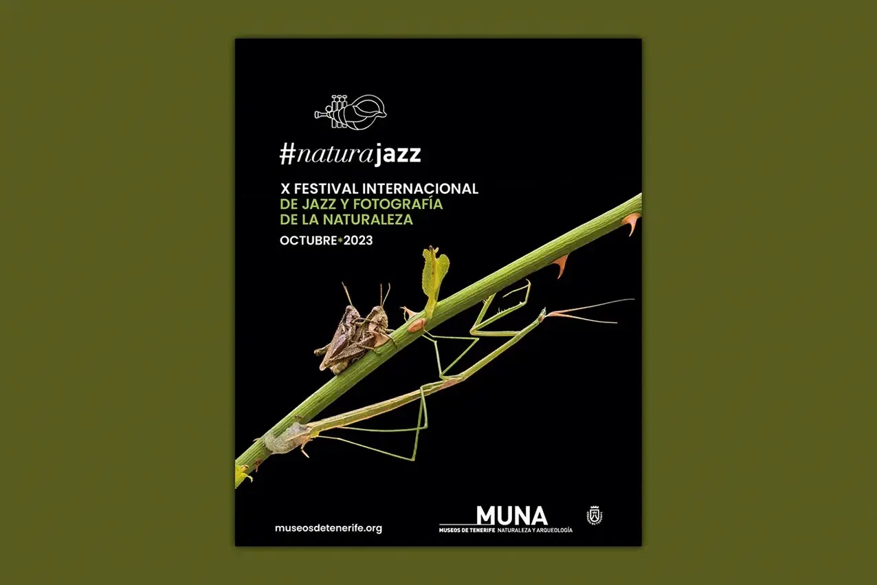 Imagen gráfica con sus respectivas adaptaciones a diversos soportes, tanto físicos como digitales, para el Festival de Jazz y Fotografía de la Naturaleza, que se celebra todos los años en el Museo de Naturaleza y Arqueología ubicado en Santa Cruz de Tenerife.